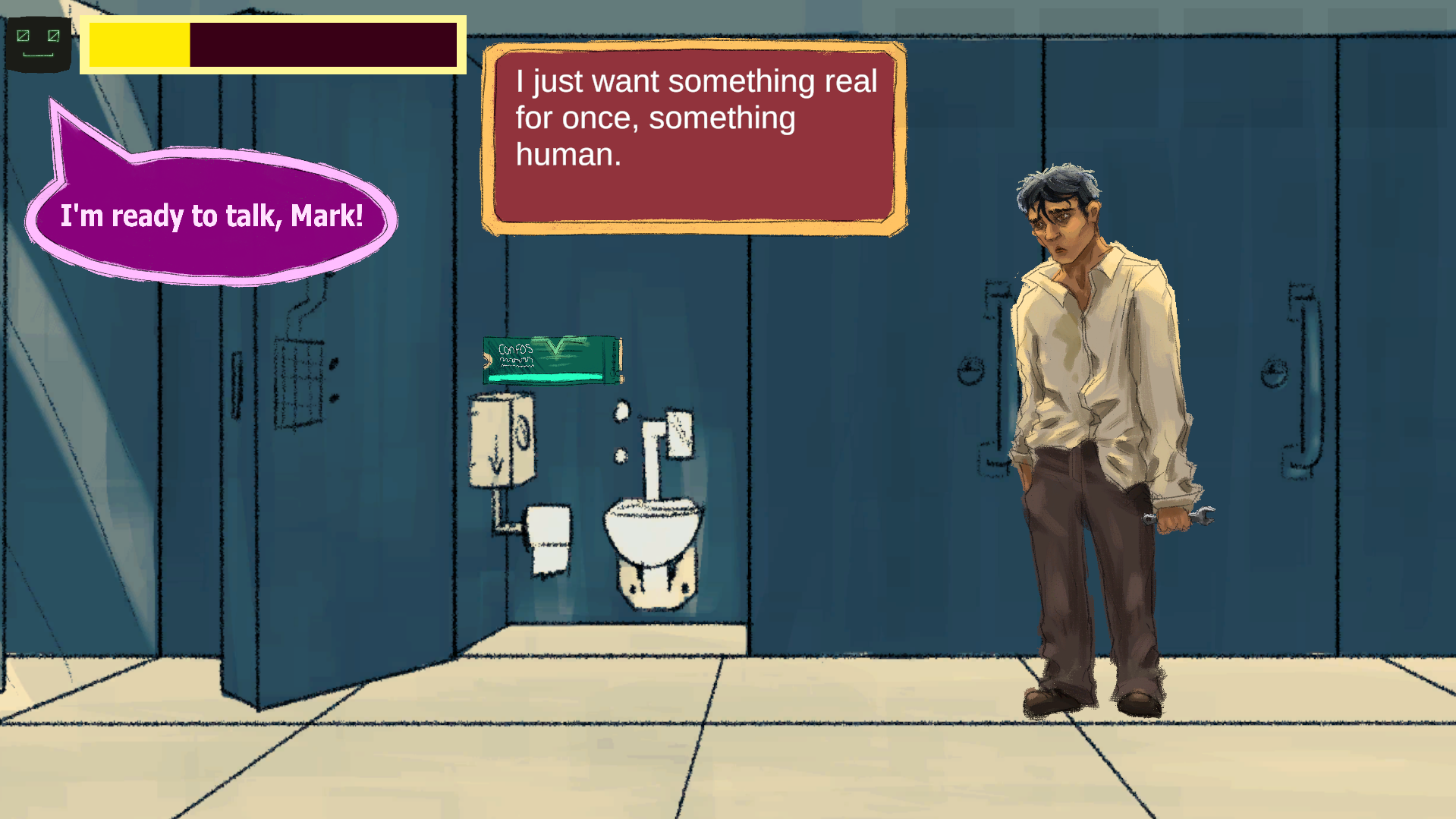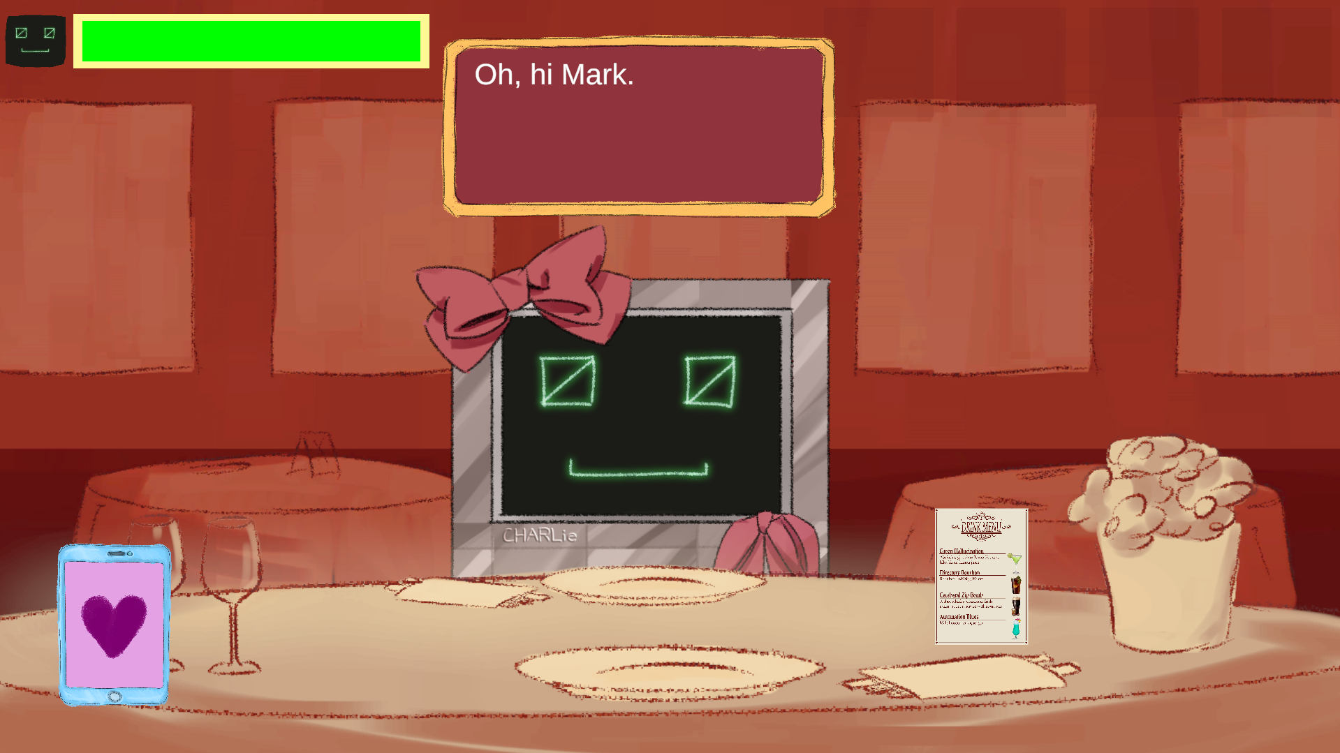 !BRB combines a dating sim and point-and-click adventure, with a twist. The main goal: find a way to leave your restaurant date discreetly without upsetting your date, a robot that’s madly in love with you.